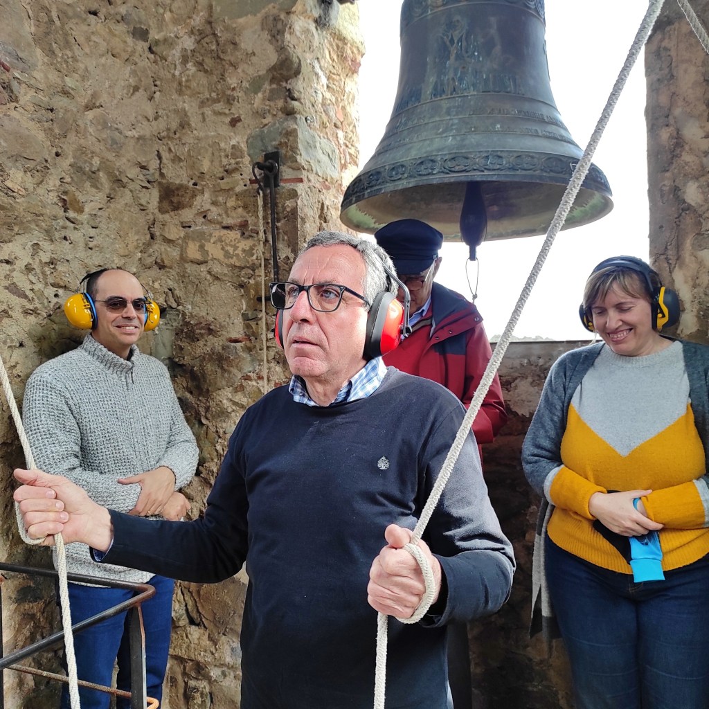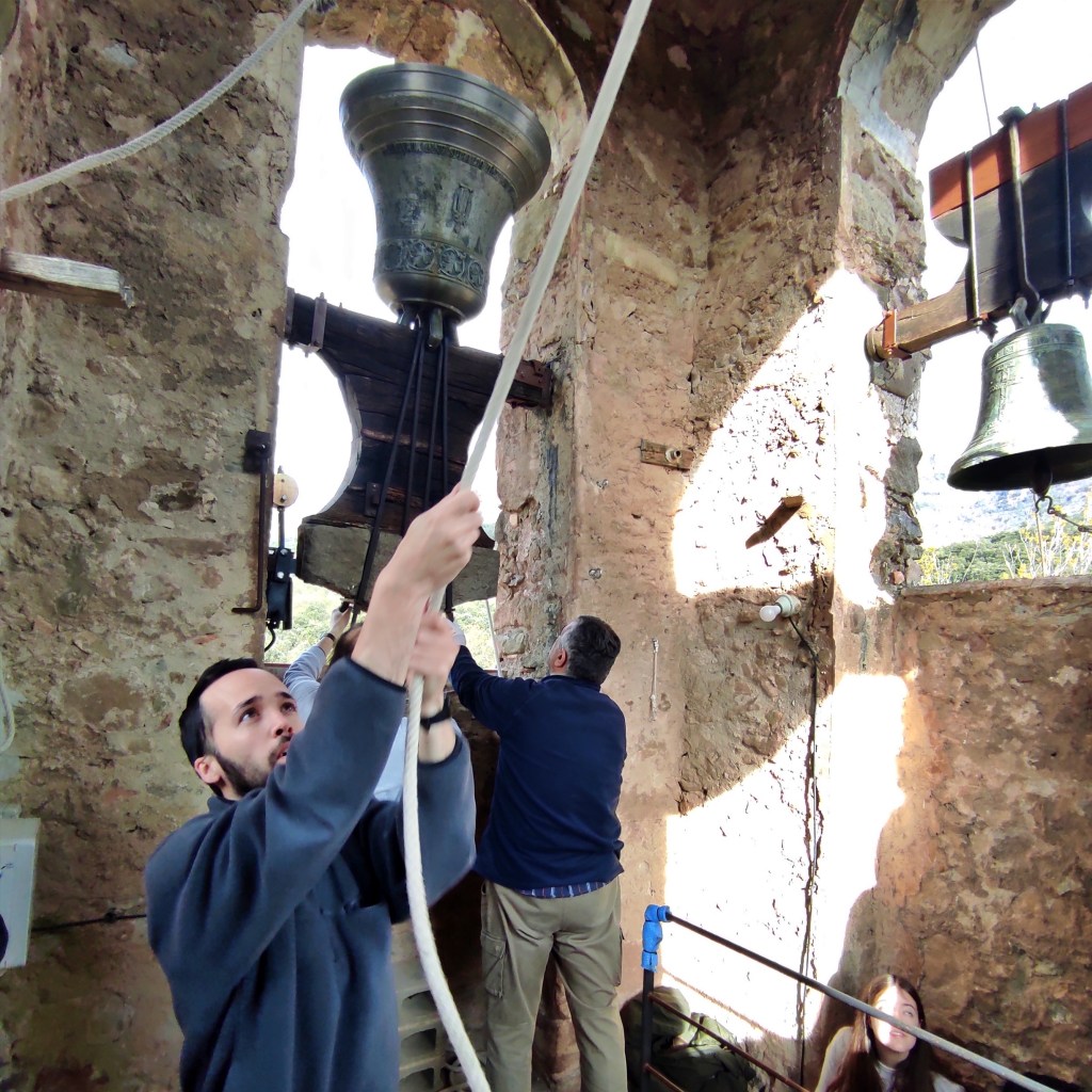 La vuitena sessió del curs de campaners es va centrar en l’aprenentatge i interpretació dels repics solemnes, uns tocs característics de les grans celebracions i festes destacades. Aquests repics es basen en tritllar les campanes petites mentre, amb les grans, es fan passades alternes deixant-les un breu instant assegudes boca amunt. Per treballar aquest toc, es va agafar com a model el tritllo del campanar de Taradell, del qual es conserva una gravació històrica dels anys vuitanta, un testimoni sonor del campaner Francesc Madriguera.