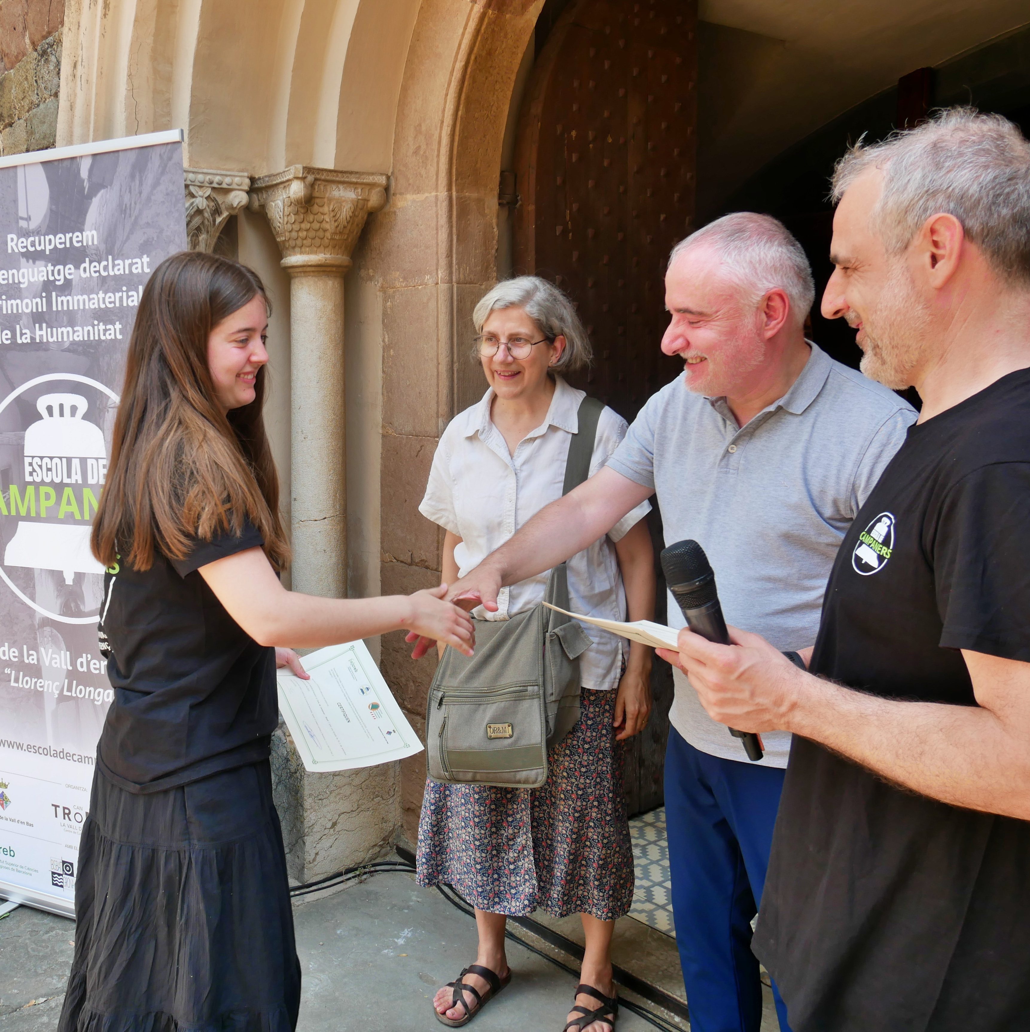 El dissabte 21 de juny es va celebrar a Joanetes l’acte de cloenda del curs 2024-2025 de l’Escola de Campaners. Des del campanar de l’església de Sant Romà, els alumnes van oferir una exhibició de fins a 22 tocs manuals de campana, apresos al llarg del curs.