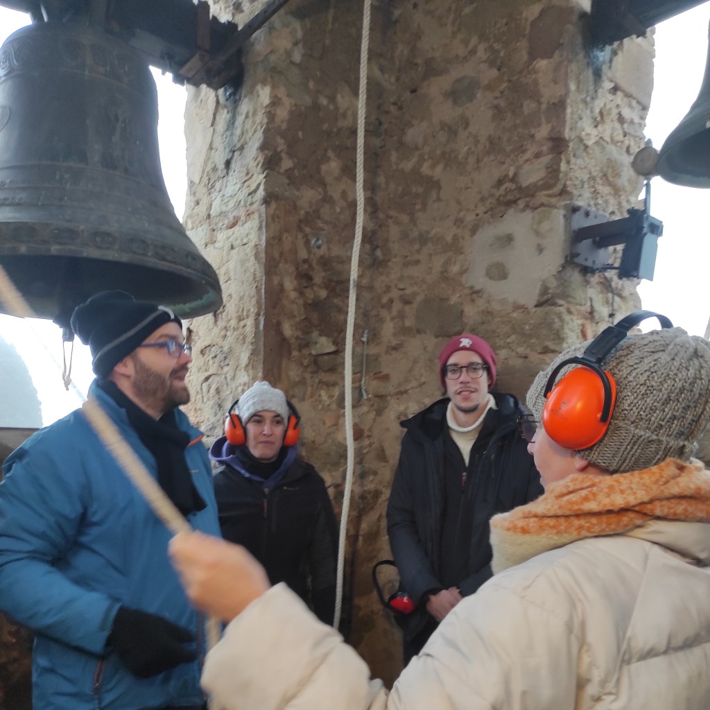 La segona part de la sessió s’ha dut a terme al campanar de Joanetes, amb el professor Jesús Martínez, campaner de Santa Maria de Montblanc i de la Catedral de Tarragona. En aquest espai, els alumnes han pogut practicar alguns tocs específics de la catedral, com el toc de prima i el toc de classe, posant en pràctica els coneixements adquirits.